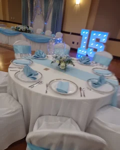 High quality, glamour, and elegance. In keeping with the theme requested. We work with high-quality materials. our decor rentals are here to elevate your celebration to unforgettable heights. From rugs that create cozy lounge spaces to dazzling disco balls that light up the dance floor, we offer unique pieces that add personality and charm to your event.